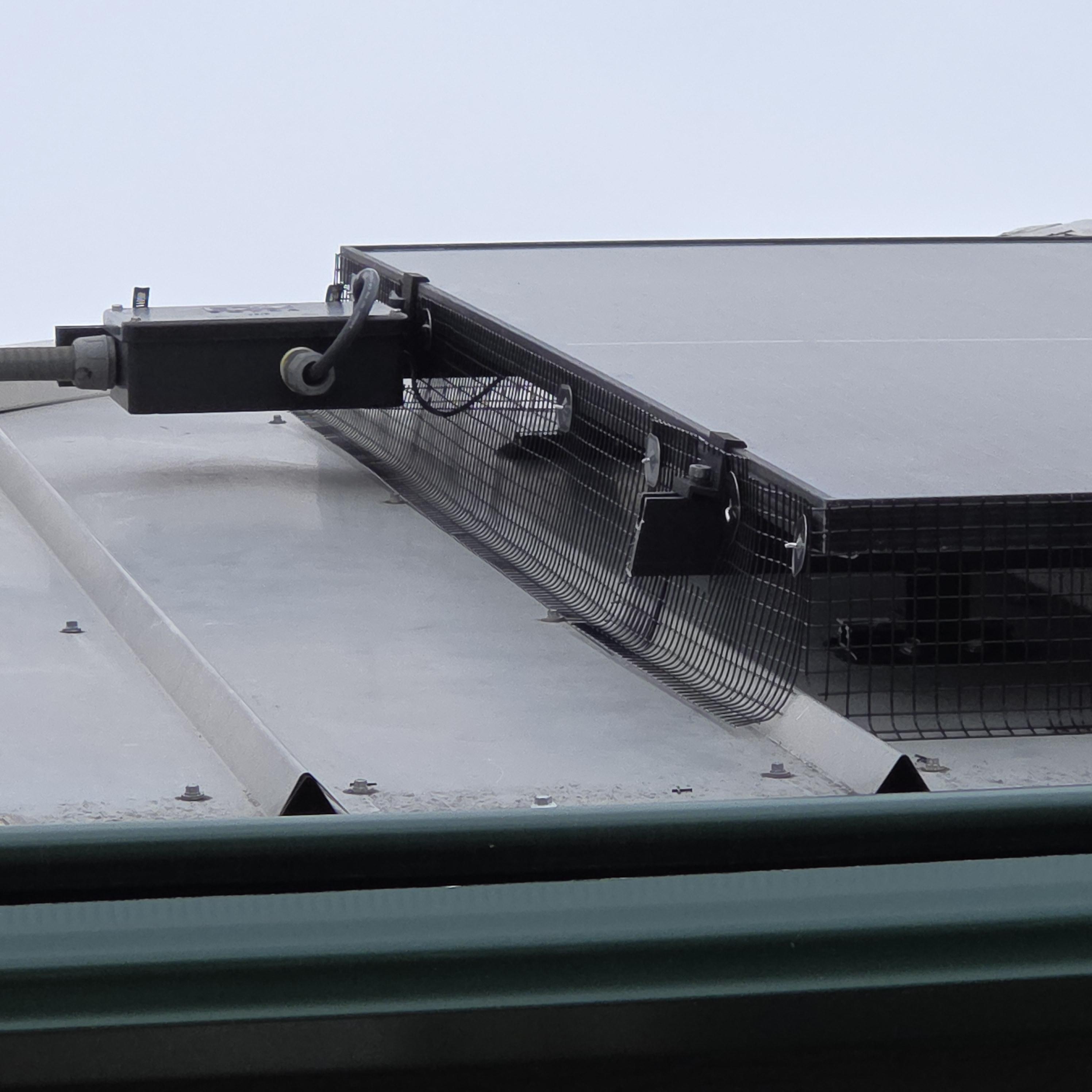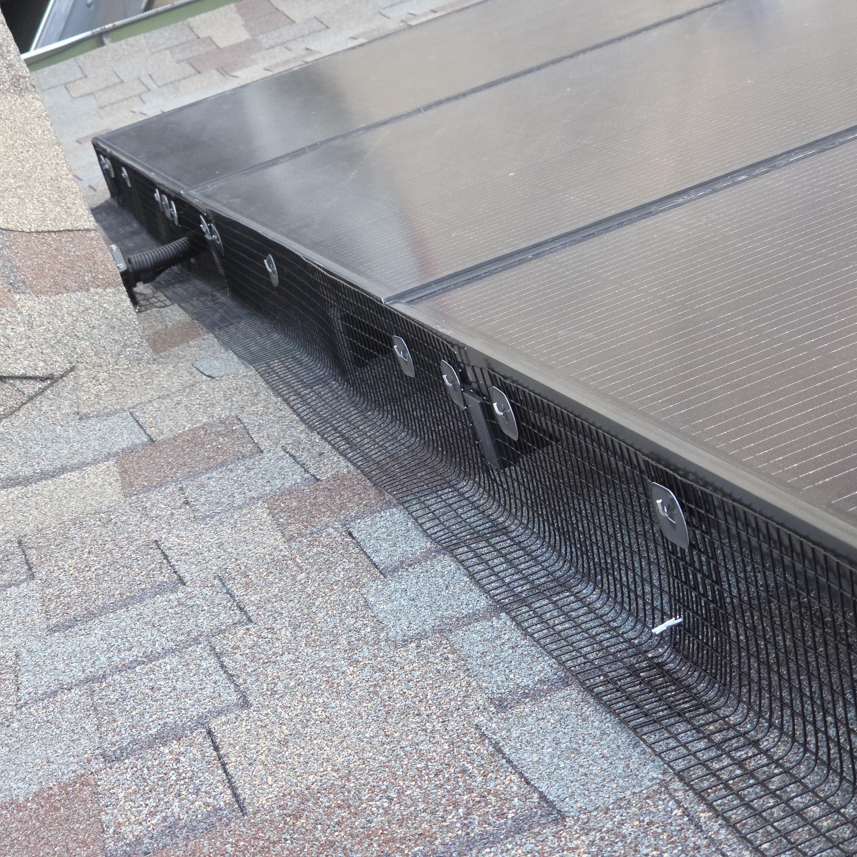 This work does not involve internal component servicing. It is a targeted pest abatement system designed to reduce access under the array while preserving airflow and rain runoff.